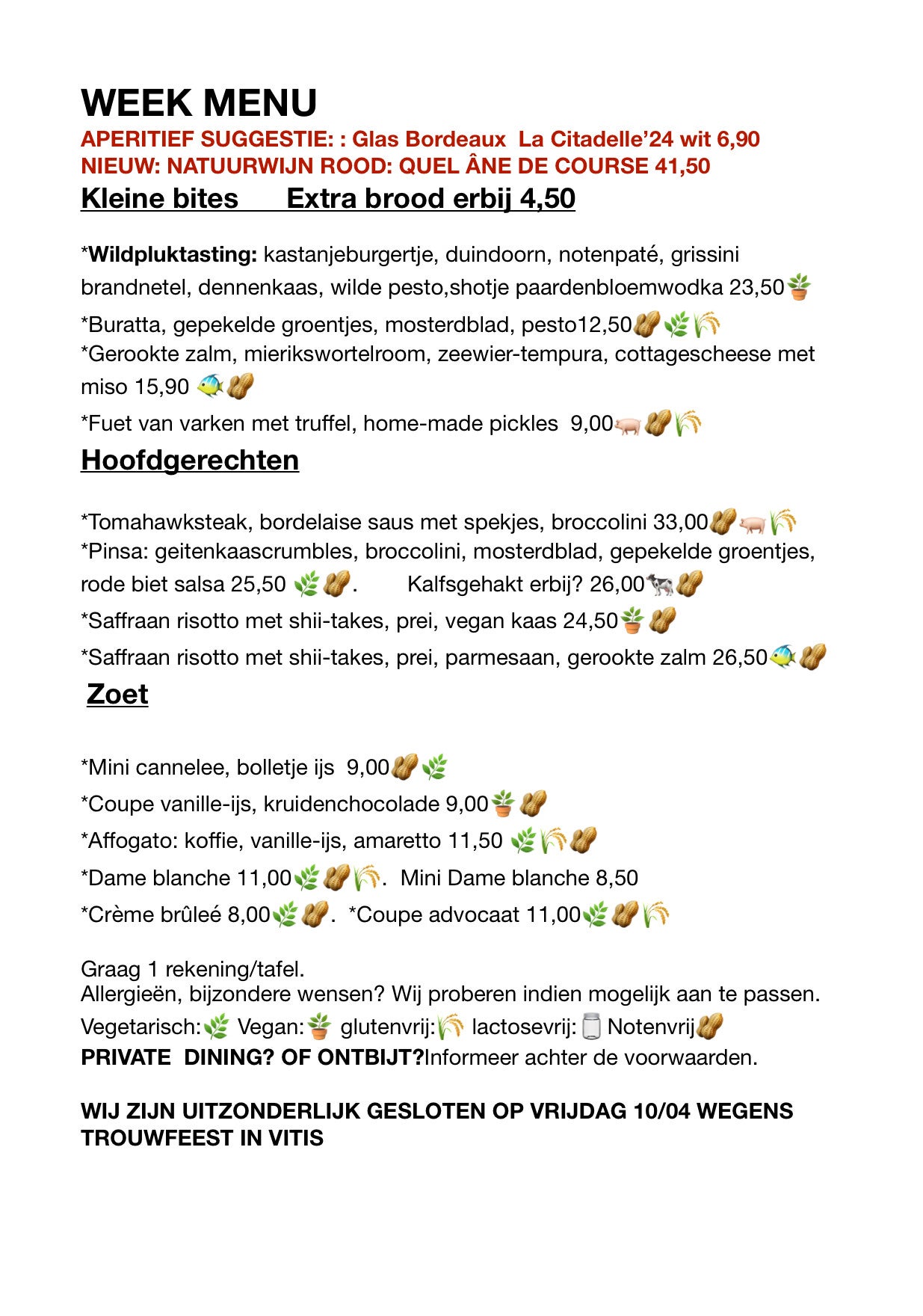 WEEKMENU VOOR HET PAASWEEKEND VANAF DONDERDAG 2 APRIL TOT EN MET ZONDAG 5 APRIL